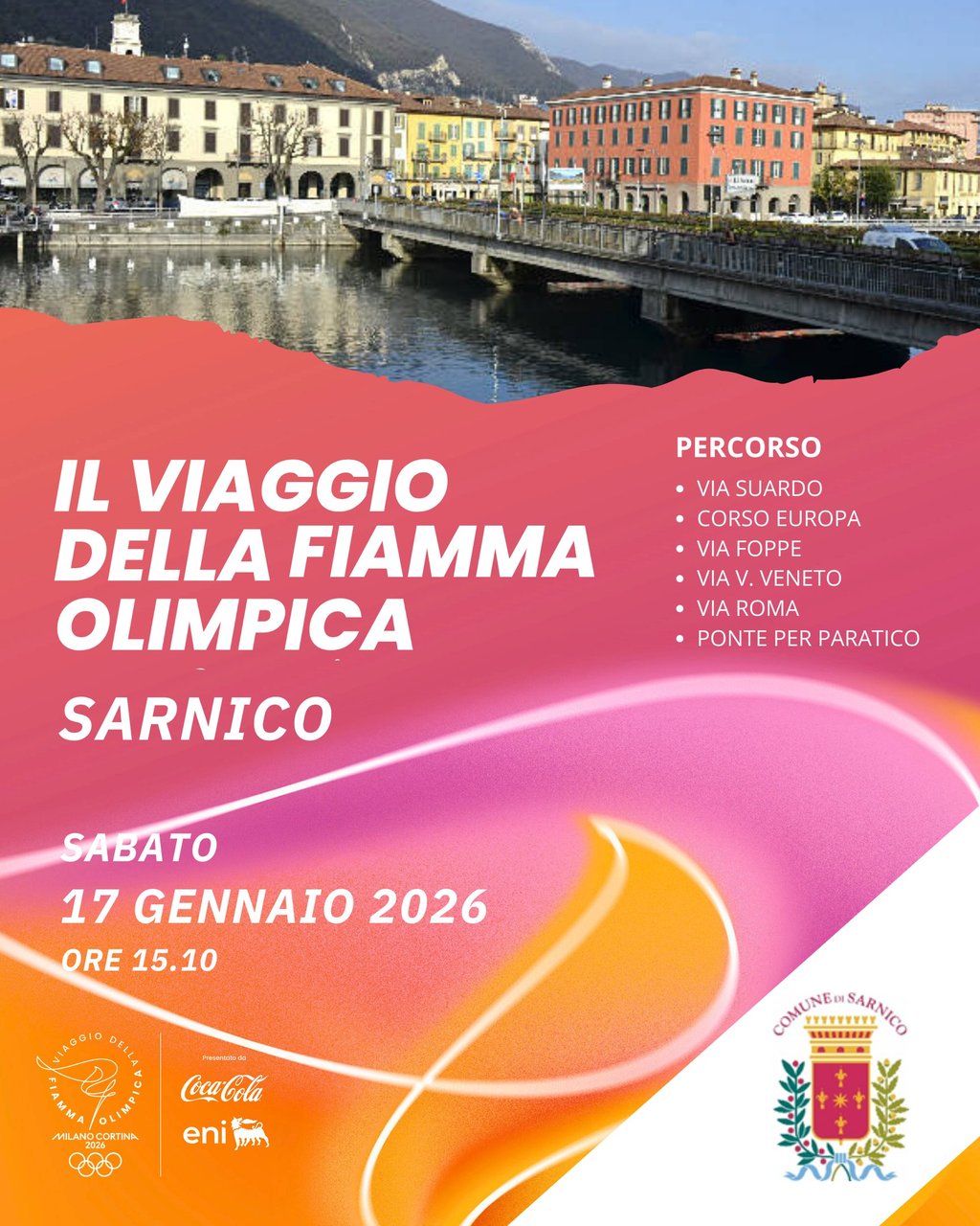 Farà tappa anche a Sarnico il viaggio della Fiamma Olimpica, evento simbolico che segna l'arrivo in Italia dei Giochi Olimpici Invernali di Milano Cortina 2026.